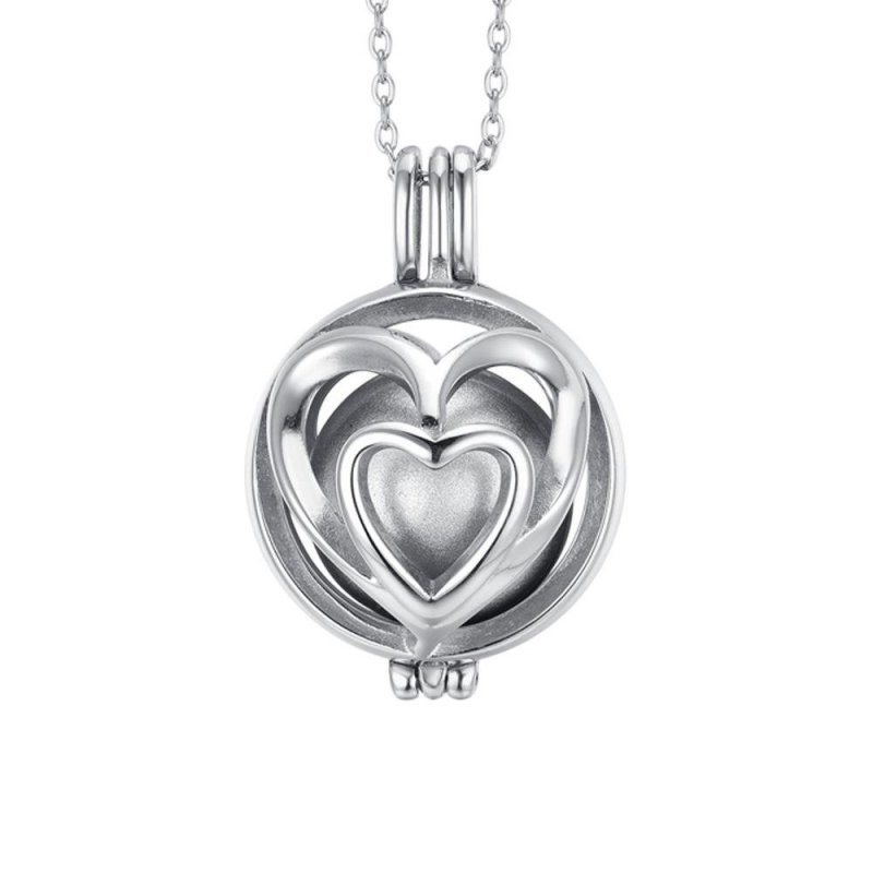 Collana Chiama Angeli Donna in acciaio con cuori e ciondolo a cuore di Luca Barra.