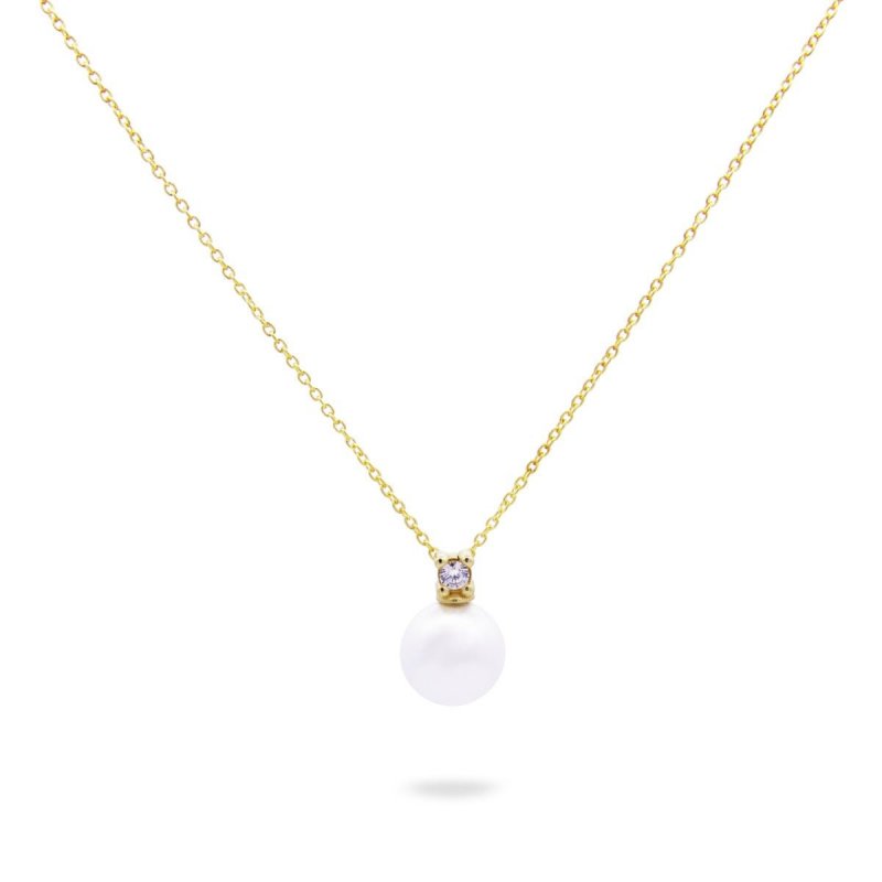 Girocollo con perla di conchiglia centrale e castone con zircone