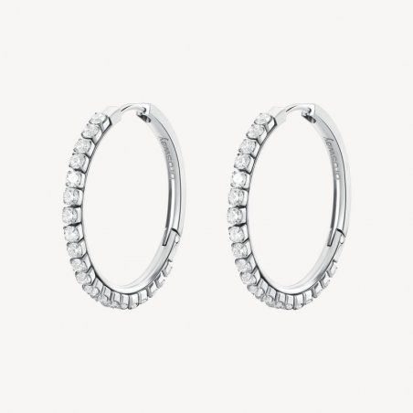 Orecchini cerchietto medi in acciaio 304 e cubic zirconia.