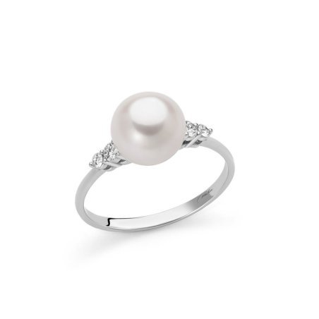 Anello Miluna in oro bianco con perla Oriente e quattro diamanti.