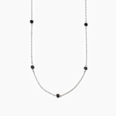 Collana regolabile da uomo in argento rodiato con catena forzatina e zirconi neri. • Diametro degli zirconi neri: 3 mm • Chiusura con moschettone • Misura regolabile, lunghezza da 45 a 50 cm • Materiale: Argento 925, Zirconi