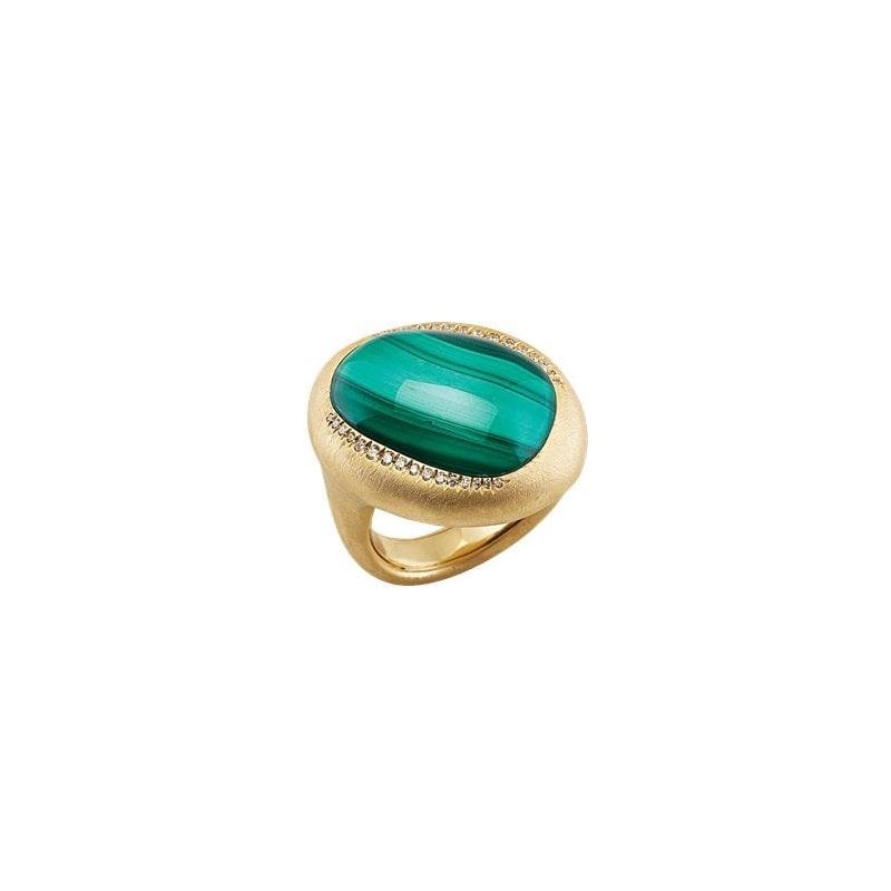 L'Anello Enchanté di Chantecler è un capolavoro di eleganza e raffinatezza. Realizzato in oro giallo satinato 18Kt, è impreziosito da diamanti (CT 0,21 NR 33), malachite e cristallo di rocca. Con un peso complessivo di oro di GR 11,80 e pietre dure di GR 2,85, questo anello rappresenta l'eccellenza dell'artigianato italiano. Perfetto per chi cerca un gioiello unico e senza tempo.