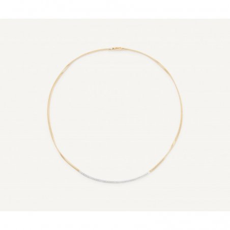 Scopri la collana in oro giallo 18 carati di Marco Bicego, un gioiello unico realizzato con l'esclusiva tecnica del coil. Questo collier è finemente impreziosito da una barretta di diamanti, conferendo un tocco di luminosità e raffinatezza a qualsiasi look. Il design classico e senza tempo rende questa collana un accessorio perfetto per ogni occasione, aggiungendo eleganza e stile al tuo outfit.
