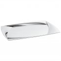 La lucidatura effetto specchio valorizza al meglio l’alta qualità dell’acciaio inox, enfatizzando forma e design. Le superfici vengono lucidate con l’ausilio di additivi e spazzole meccaniche di diversa grana e materiali, che levigano l’acciaio inossidabile fino a conferire un’elevata lucentezza. L’oggetto si arricchisce di riflessi che lo rendono ancora più prezioso. La torsione delle linee su se stesse dà vita a un design dal moto sinuoso e leggero. La lucentezza dell'acciaio avvolge la geometria di ciascun articolo della collezione, conferendo a coppe e vassoi ulteriore 'morbidezza' e un'estrema eleganza.