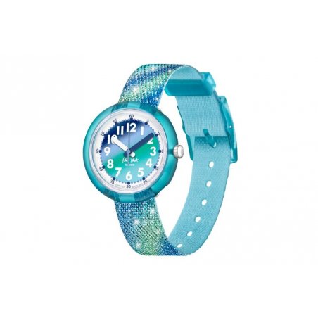 L'orologio per bambini FROZEN RAINBOW di Flik Flak è un'esplosione di colori con le sue bande sfumate verdi e azzurre glitterate. Questo orologio non è solo un accessorio alla moda, ma anche un utile strumento educativo per insegnare ai bambini a leggere l'ora. Con un diametro di 31.85 mm e uno spessore di 9.25 mm, è progettato per adattarsi comodamente al polso dei più piccoli. Realizzato con materiali sostenibili, come il PET riciclato per il cinturino e la plastica di origine biologica per la cassa e la fibbia, questo orologio è anche impermeabile fino a 3 Bar, rendendolo perfetto per le avventure quotidiane dei bambini. Parte della collezione FLIK FLAK ORGANIZED CHAOS, il FROZEN RAINBOW è un regalo ideale per ogni occasione.