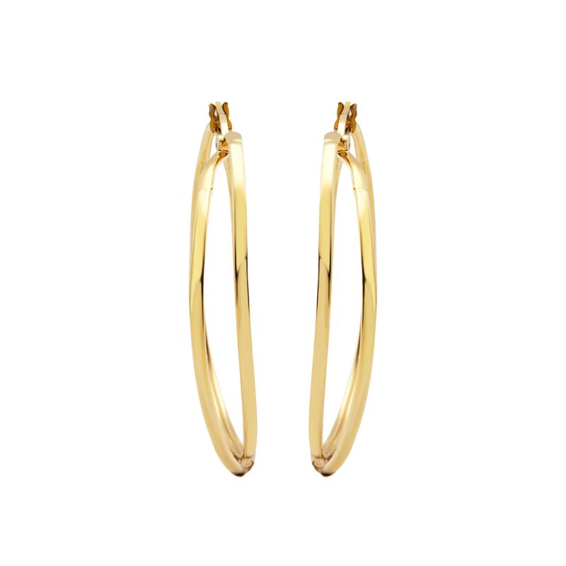 Gli orecchini della collezione Lightline, con il loro design a doppio cerchio, rivisitano il classico con un tocco moderno e affascinante. Realizzati in acciaio lucido color oro, la loro silhouette unica crea un effetto luminoso e dinamico, perfetto per aggiungere un tocco di luce a ogni look.