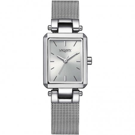 Orologio da donna di Vagary della collezione Flair. Orologio con cassa in acciaio di forma rettangolare dal diametro di 21,5x27 mm. Il quadrante è con finitura bianco argento con indici e lancette acciaio. Il cinturio è in acciaio maglia milano con chiusura a gioielleria. Il movimento è al qurzo by Citizen. Le funzioni sono: solo tempo lady. Funziona datario: no. Il vetro è vetro minerale. La resistenza all'acqua è 5 ATM. La referenza è IK7-911-11