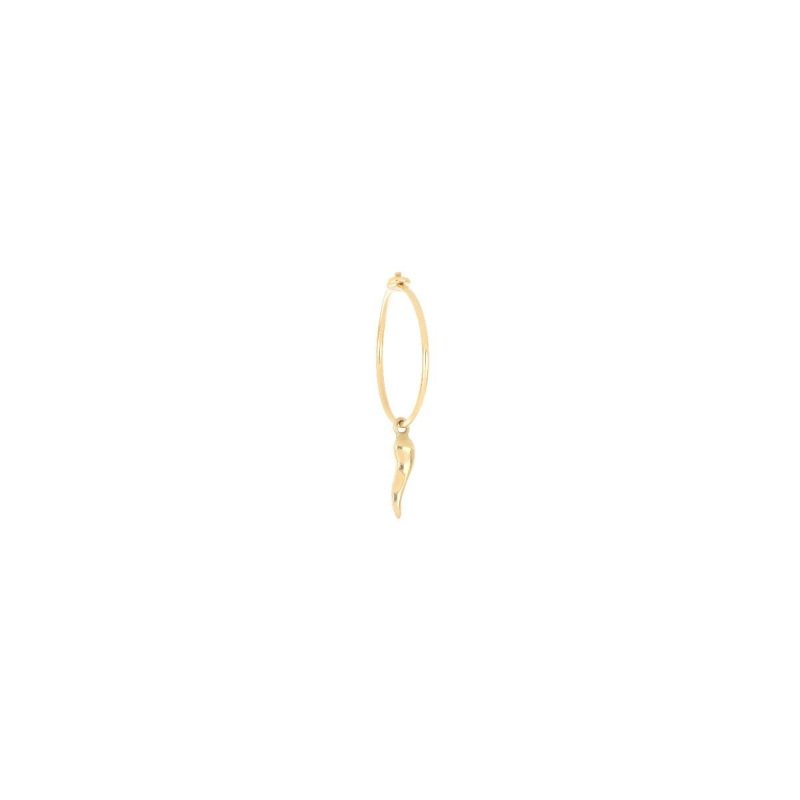 Orecchino a cerchio mini in oro giallo 18Kt con cornetto pendente.