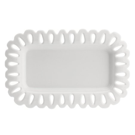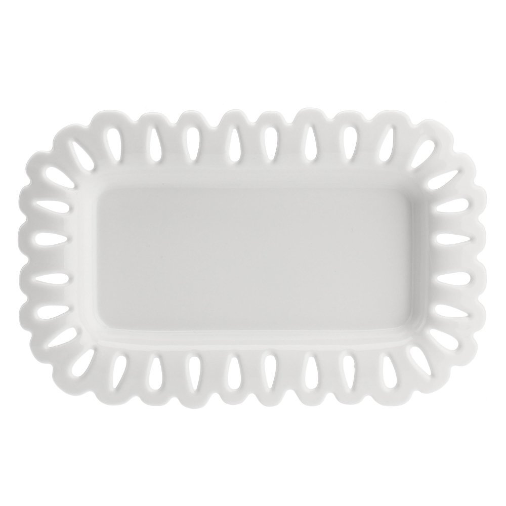 Elegante vassoio rettangolare traforato in porcellana di La Porcellana Bianca, ideale per servire con stile.