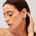 Orecchini Big Heart in acciaio lucido con design bombato e sfaccettato.
