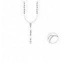 Collana rosario realizzata in acciaio anallergico con finitura rodiata e grani neri sfaccettati. Croce pendente. Ha lunghezza totale di 60 cm + 5 cm . Chiusura a moschettone. L'articolo è venduto su concessione ufficiale e viene spedito in tutto il mondo completo di confezione, shopper e garanzia autentica valida 24 mesi.