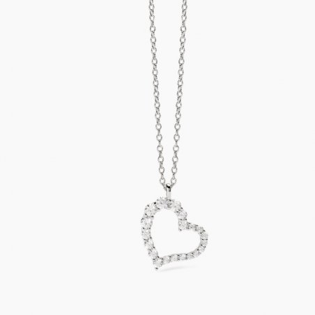 Girocollo da donna in argento rodiato con pendente cuore e zirconi, lunghezza regolabile.