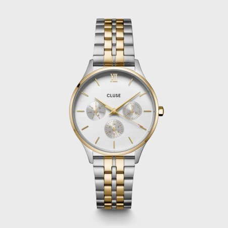 Orologio Cluse Minuit Multifunction, acciaio inossidabile, oro e argento, elegante e funzionale.