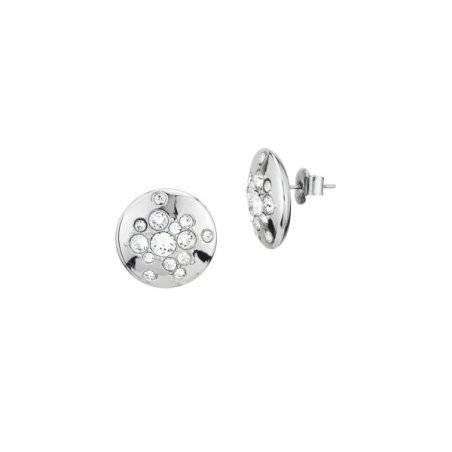 Orecchini rodiati a forma circolare piatta decorati da cristalli crystal.