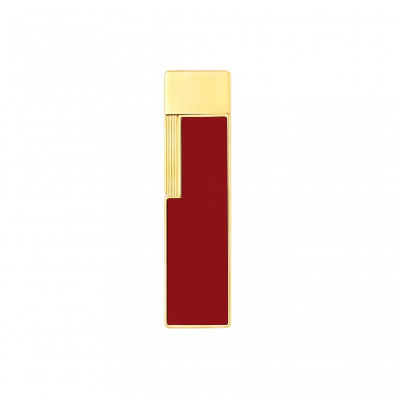 Accendino laccato Twiggy St Dupont rosso e oro, elegante e sottile con fiamma piatta.