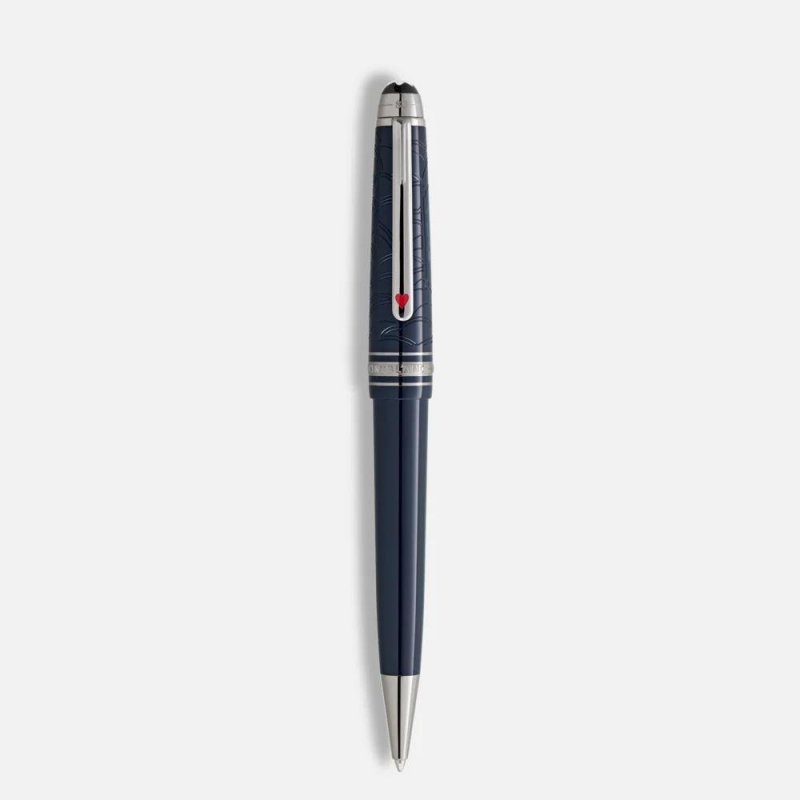 Penna a sfera Meisterstück Around the World in 80 Days di Montblanc in resina blu scura.