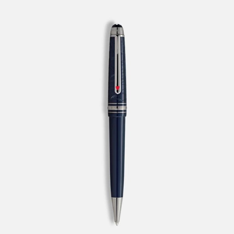 La collezione Meisterstück Around the World in 80 Days si ispira al famoso romanzo di Jules Verne. La penna a sfera Classique, in resina blu scura, racconta l'epico viaggio del Signor Fogg e Passepartout, con dettagli come il treno inciso e il simbolo dell'asso di cuori.