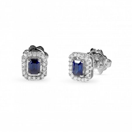 Orecchini in oro bianco con diamante e zaffiro, eleganti e raffinati.