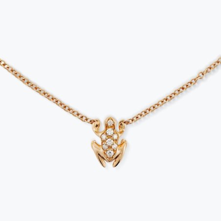 Collana Happy Frog Mini in oro con rana mignon e pietre preziose.