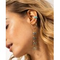 Il Mono-Orecchino Hoop con Catene e Pendenti della collezione Gipsy Chic di Rue Des Mille è un accessorio che incarna lo spirito libero e luminoso del brand. Realizzato in argento 925 riciclato con una brillante finitura dorata, presenta un design a cerchio da cui scendono morbide catene decorate con pepite di zirconi milky. Il movimento fluido e la brillantezza dei dettagli lo rendono ideale per aggiungere carattere e fascino a qualsiasi outfit, dal più casual al più elegante. Pensato per chi ama distinguersi con uno stile bohémien ma deciso, è un gioiello raffinato e contemporaneo, perfetto per ogni occasione.