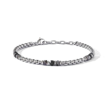 Bracciale da uomo in acciaio con Labradorite grigia e Onice Nera, firmato Comete Gioielli.