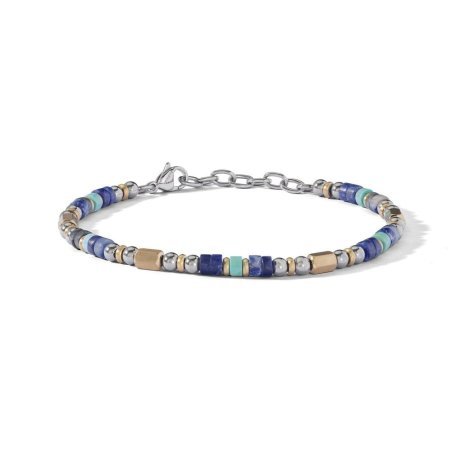 Bracciale da uomo in acciaio con pvd giallo, turchese e sodalite di Comete Gioielli.
