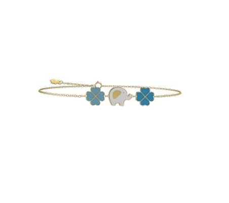 Bracciale bimbo in oro 9Kt con 2 quadrifogli celeste di Nanan.
