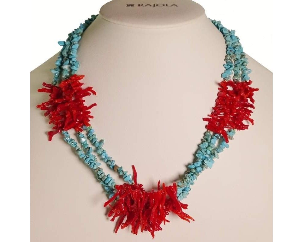 Collana REEF 3f. turchese corallo ematite madrep oro