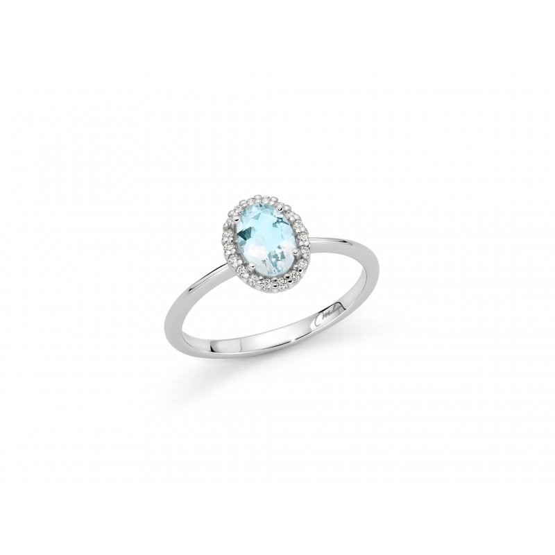 Anello Miluna in oro bianco con acquamarina naturale e diamanti, simbolo di eleganza.