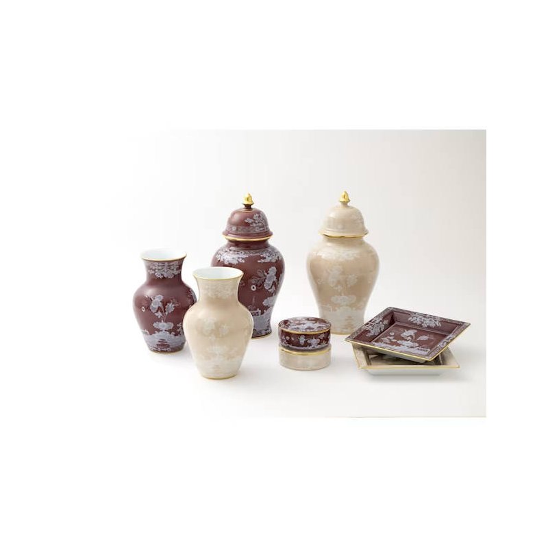Scatola portaoggetti in porcellana con decoro Castagna e filettatura oro. Collezione Oriente Italiano.