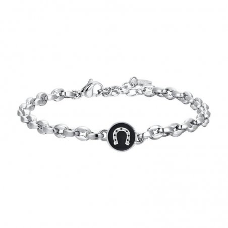 Bracciale uomo Luca Barra in acciaio con ferro di cavallo e dettagli in smalto nero.