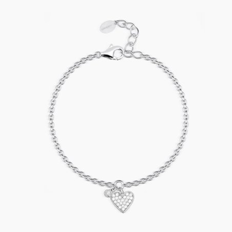 Bracciale Mabina in argento 925 rodiato con ciondolo cuore e zirconi, lunghezza regolabile.