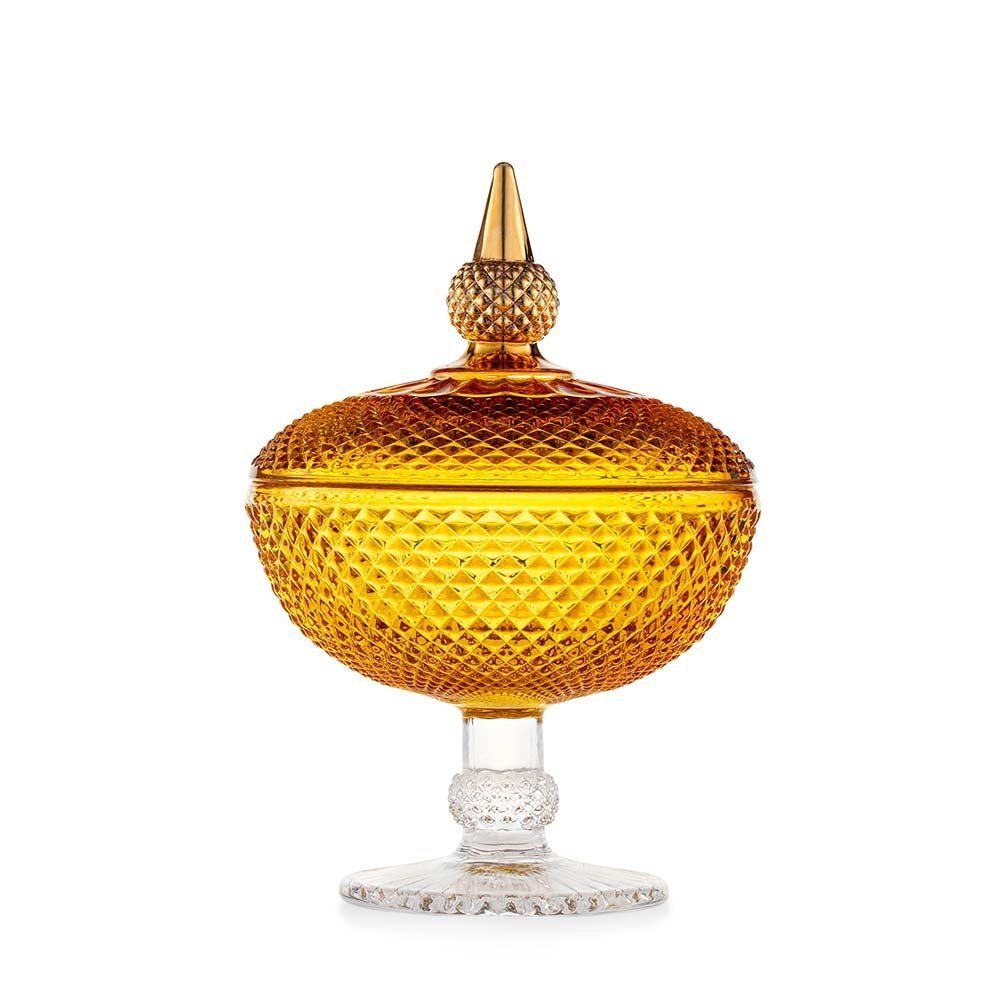 Alzata Gr Ambra di Emo', collezione Eterea, in vetro lavorato e colore Ambra.