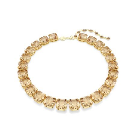 La Collana Tennis Millenia di Swarovski è un gioiello raffinato che unisce la brillantezza dei cristalli taglio Asscher in una calda tonalità caramello alla preziosità della placcatura color oro. La struttura articolata valorizza la luce, mentre la montatura a griffe doppia esalta ogni dettaglio. Il design è completato da un pratico gancio a moschettone e da un extender decorato, offrendo versatilità e comfort. Perfetta per chi desidera distinguersi con eleganza, questa collana rappresenta un regalo ideale per ogni occasione speciale.