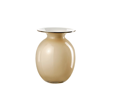 Vaso Bombetta in vetro soffiato opale/fumé di Onlylux, elegante e artigianale.