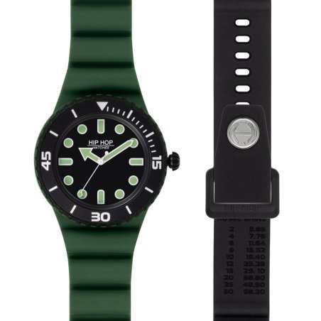 L'orologio Hip Hop Master è un mix perfetto di stile e praticità, ideale per affrontare qualsiasi sfida quotidiana con energia e precisione. Il quadrante nero è illuminato da numeri e sfere con luminous bianco, creando un contrasto accattivante con la cassa e la lunetta girevole unidirezionale. Il cinturino in silicone verde, dotato di chiusura .DOT, presenta un dettaglio speciale: la Wind Speed, una scala di conversione da metri al secondo a nodi per indicare la velocità del vento. Inoltre, l'orologio viene fornito con un secondo cinturino intercambiabile in silicone nero, permettendo di adattarsi al mood della giornata.