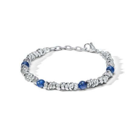 Bracciale in acciaio lucido con lapislazzuli blu di Comete Gioielli.