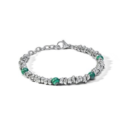 Bracciale in acciaio lucido con malachite verde di Comete Gioielli.