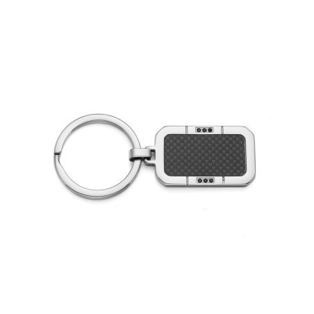 Elegante portachiavi da uomo in acciaio, carbonio e zirconi neri.