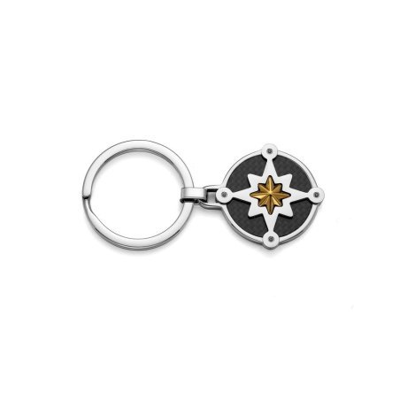 Portachiavi da uomo in acciaio, pvd giallo, fibra di carbonio e zirconi neri di Comete Gioielli.