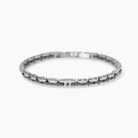 Bracciale Kidult in acciaio 316L con cristalli e ceramica nera, lunghezza regolabile.