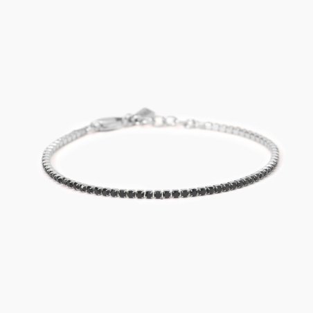 Bracciale in acciaio 316L con cristalli neri, lunghezza regolabile.