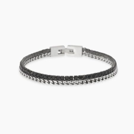 Scopri il Bracciale Tennis di Kidult, realizzato in acciaio 316L lucido con PVD gunmetal. Questo elegante bracciale presenta una lunghezza regolabile da 19.5 a 21 cm, perfetto per adattarsi a qualsiasi polso. La catena Franco, di larghezza 3 mm, è impreziosita da cristalli neri di diametro 2.5 mm, conferendo un tocco di raffinatezza al design complessivo. La larghezza totale del bracciale è di 6 mm, rendendolo un accessorio versatile e sofisticato per ogni occasione.