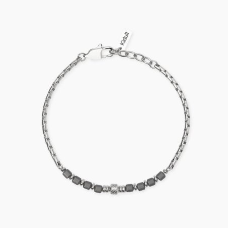 Il bracciale in acciaio 316L di Kidult è un accessorio elegante e versatile. Dotato di una lunghezza regolabile da 19 a 21 cm, presenta una catena veneta con un elemento centrale e cubetti faccettati in ematite. Le dimensioni del bracciale sono: larghezza catena 2.6 mm, elemento centrale 4.7x5.2 mm e pietre 4x4 mm. Questo bracciale è perfetto per chi cerca un gioiello raffinato e moderno, adatto a ogni occasione.