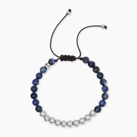 Bracciale in acciaio 316L con sodalite blu e nylon nero, regolabile.
