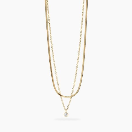Questo elegante girocollo di Kidult è realizzato in acciaio 316L con un raffinato rivestimento PVD giallo. La lunghezza è regolabile da 38 a 43 cm, permettendo una vestibilità personalizzata. Il design include catene forzatina diamantata e herringbone, che aggiungono un tocco di sofisticatezza. Il pendente è impreziosito da un cristallo, con dimensioni di forzatina e herringbone di 1.8 mm e una pietra di Ø 4 mm. Perfetto per aggiungere un tocco di eleganza a qualsiasi outfit.