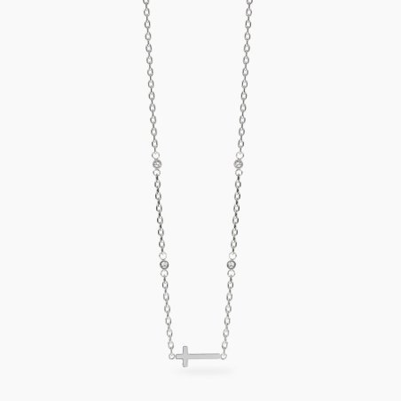 Girocollo in acciaio 316L con cristalli e croce, lunghezza regolabile.
