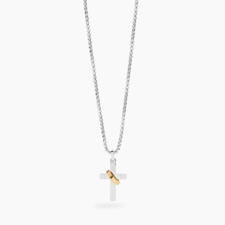 Collana Kidult in acciaio 316L con pendente croce e Pvd giallo.