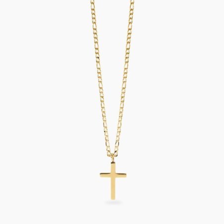 Collana in acciaio 316L con Pvd giallo, catena Figaro e pendente croce.