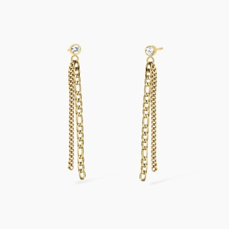 Eleganti orecchini in acciaio 316L con Pvd giallo e cristalli di Kidult.